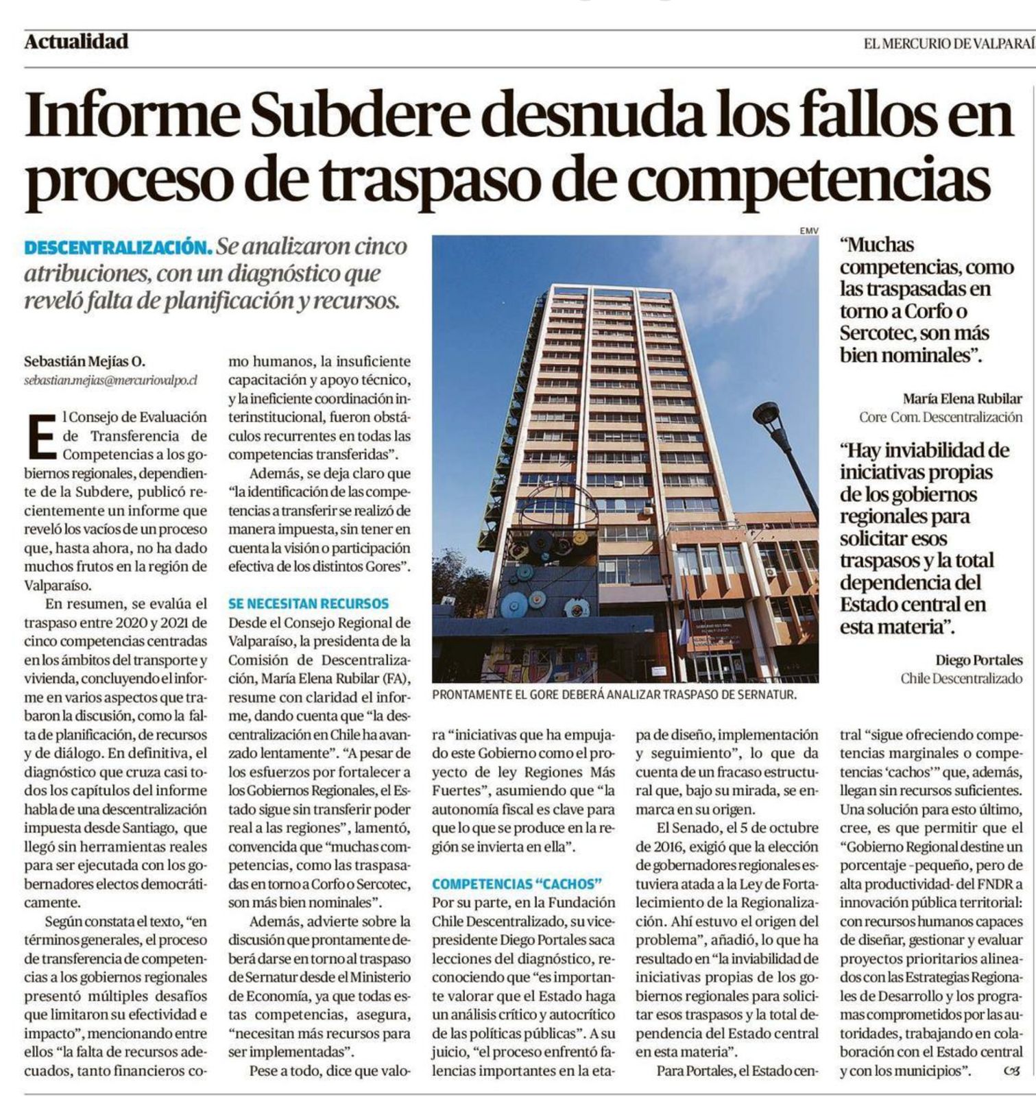 Noticias Informe Subdere desnuda los fallos en proceso de traspaso de competencias Publicado el 14 junio, 2025 Compartir esta publicación